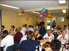 Het pand aan de Wilhelminastraat 25 in Arnhem is voor deze gelegenheid versierd met slingers, ballonnen en een groot spandoek aan de gevel. Het personeel was bij aankomst vanmorgen blij verrast toen ze het feestelijk versierde pand zagen. Maar bij deze verrassing bleef het deze dag niet. "Met een feestelijke lunch hebben we samen ons jubileum gevierd.", laat Charles Steneker weten. Steneker vormt samen met Jetten en Daan van Oort de directie van 4Dental Tolmeijer. Behalve een feestelijke lunch kreeg het personeel ook een fraaie goody bag van de leveranciers aangeboden die zo ook hun waardering voor de prettige samenwerking lieten blijken.
